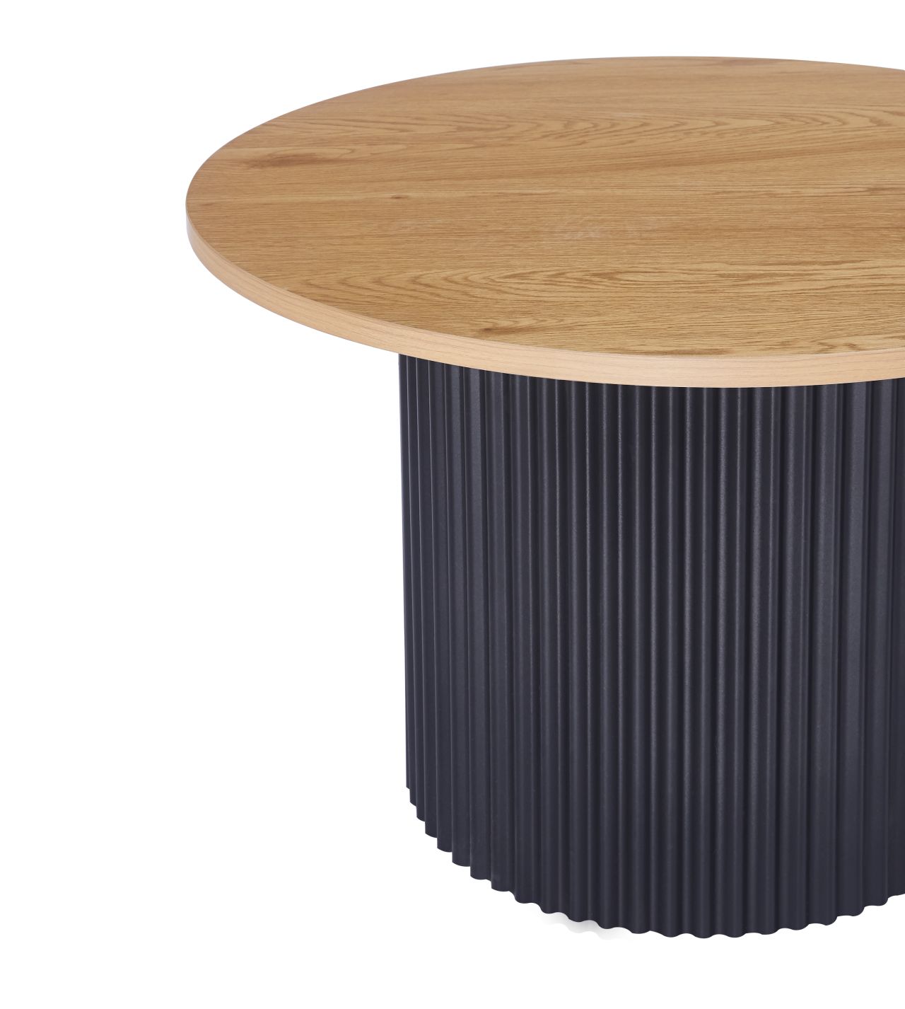 Połączenie blatów w dekorze dąb naturalny z czarnym, metalowym stelażem wpisuje się w aktualne trendy wnętrzarskie, łącząc ciepło drewna z elegancją loftowej formy.