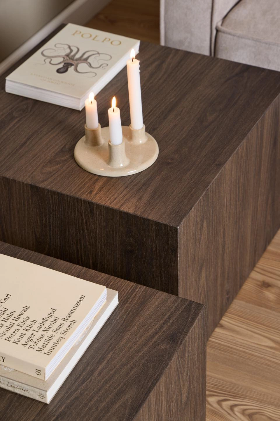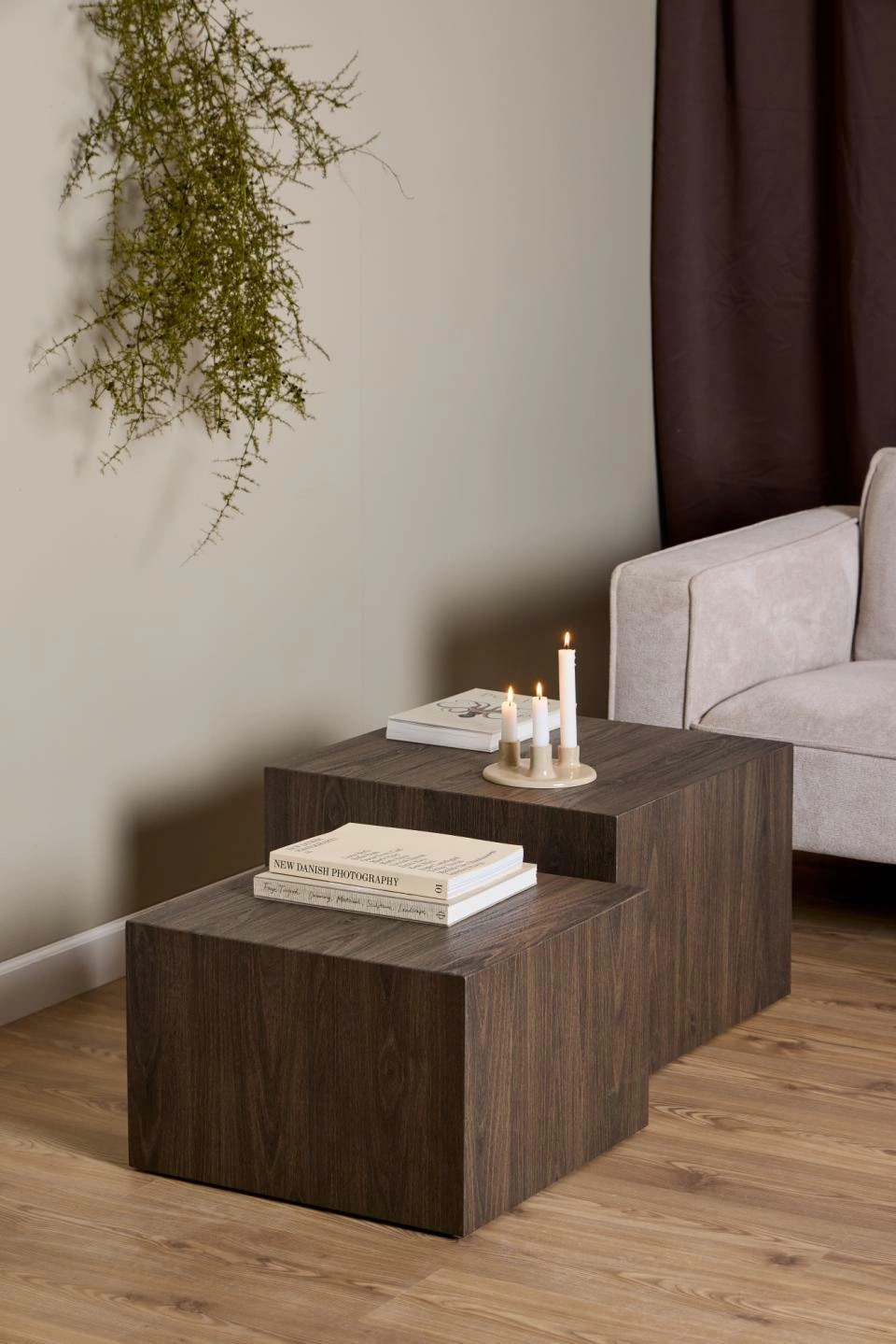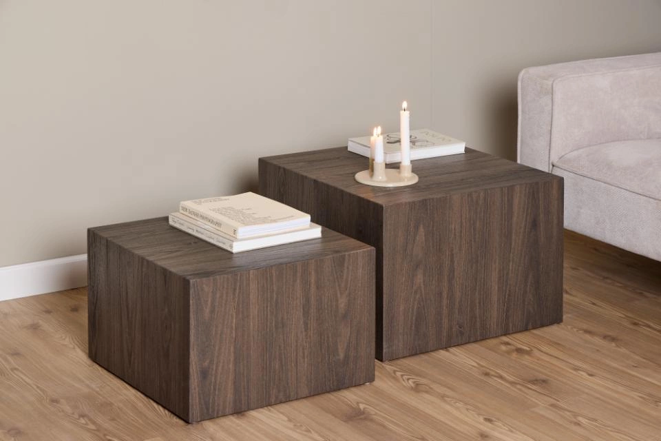 Komplet dwóch stolików w formie sześcianów to elegancki zestaw do salonu.