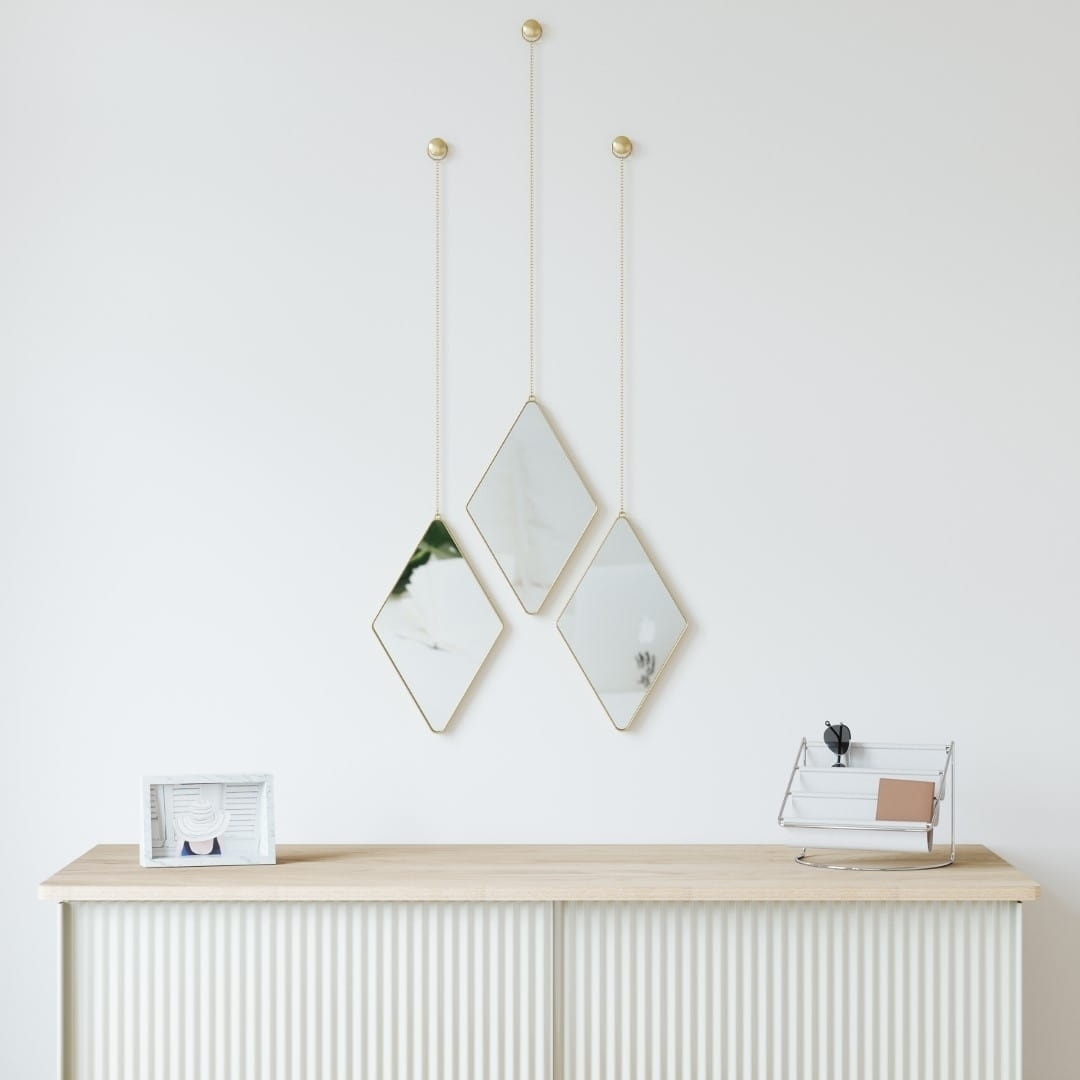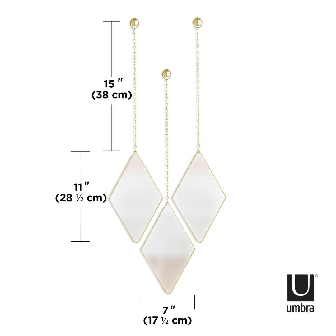 UMBRA DIMA DIAMOND to zestaw trzech wyjątkowych luster w kształcie diamentu, które stanowią elegancką i oryginalną dekorację ścienną.