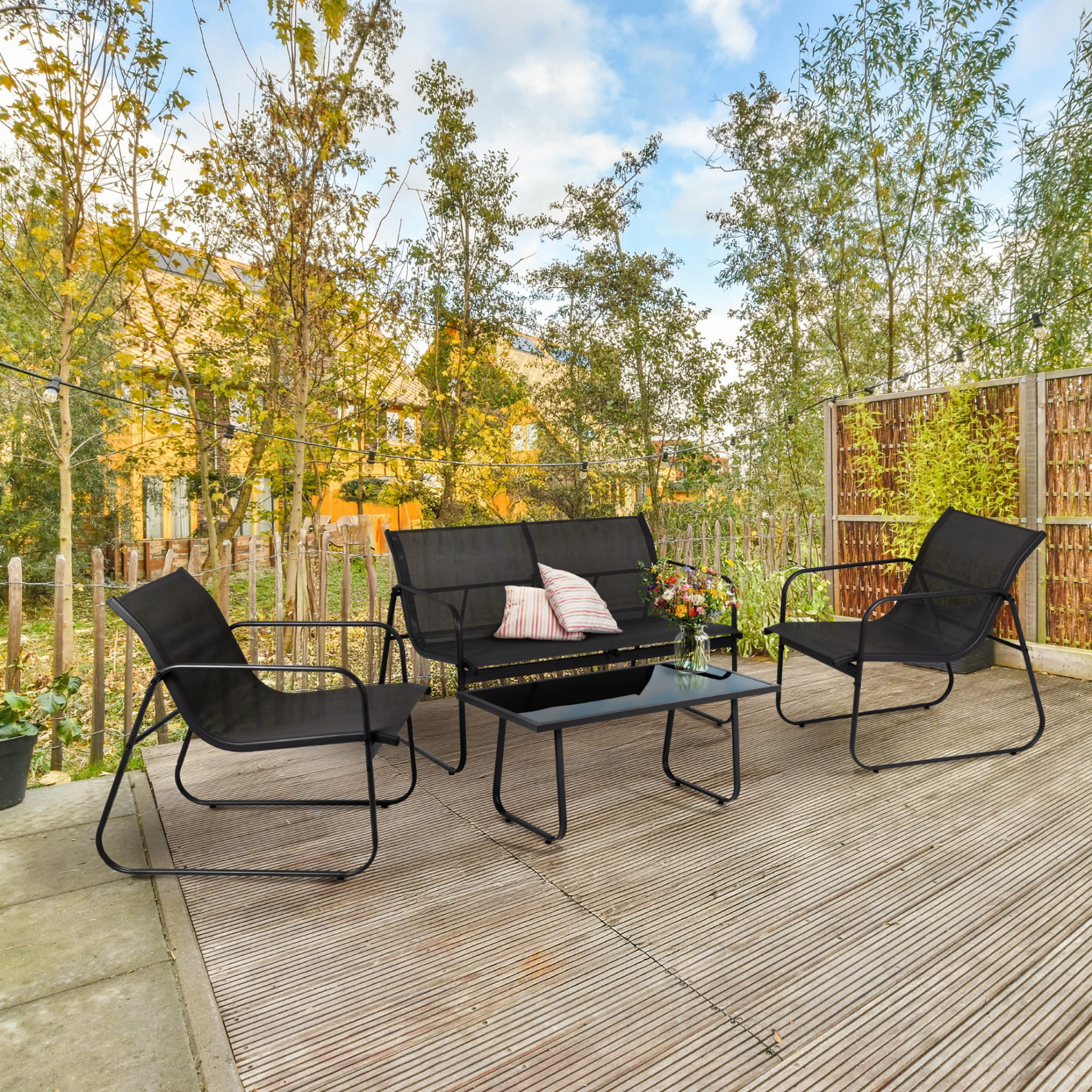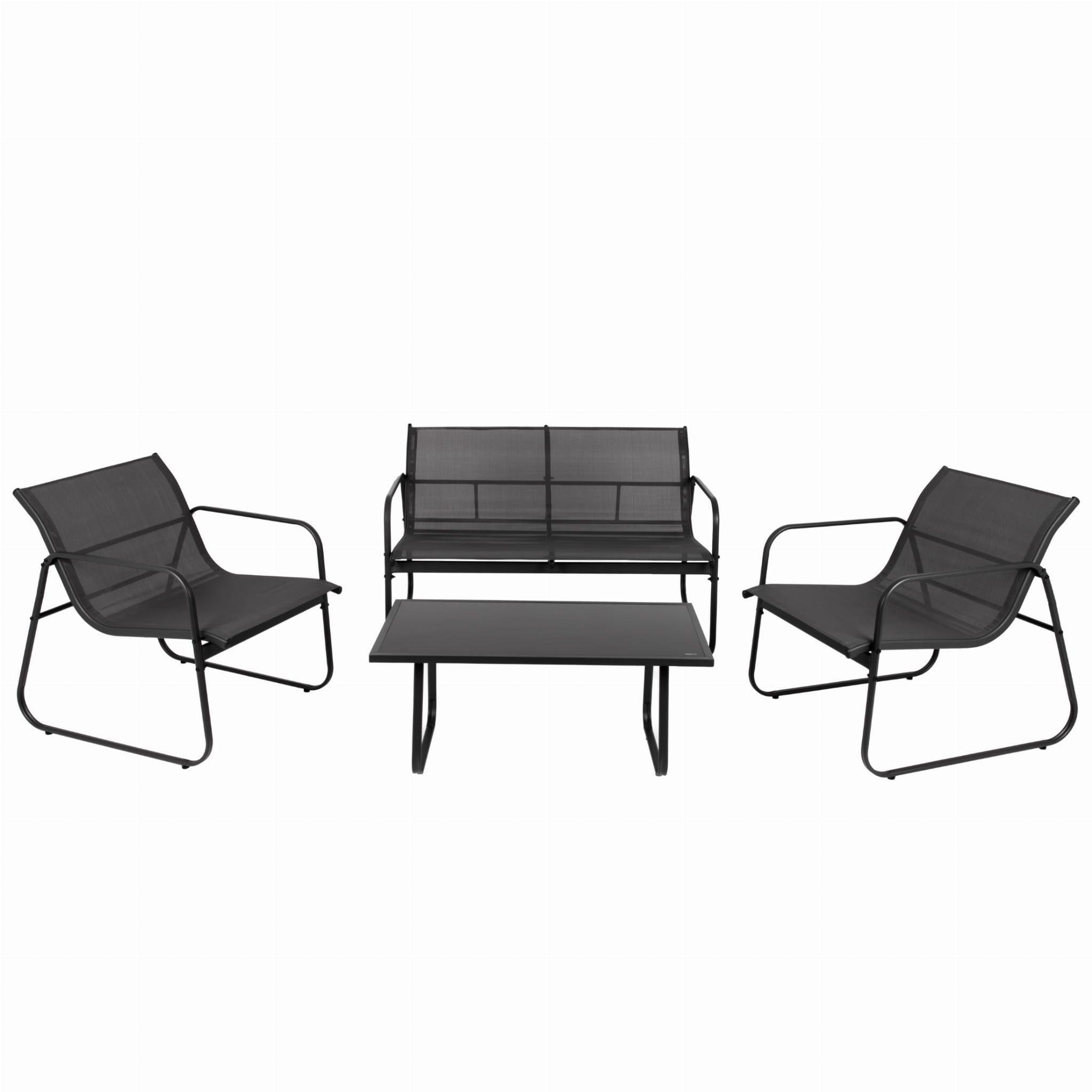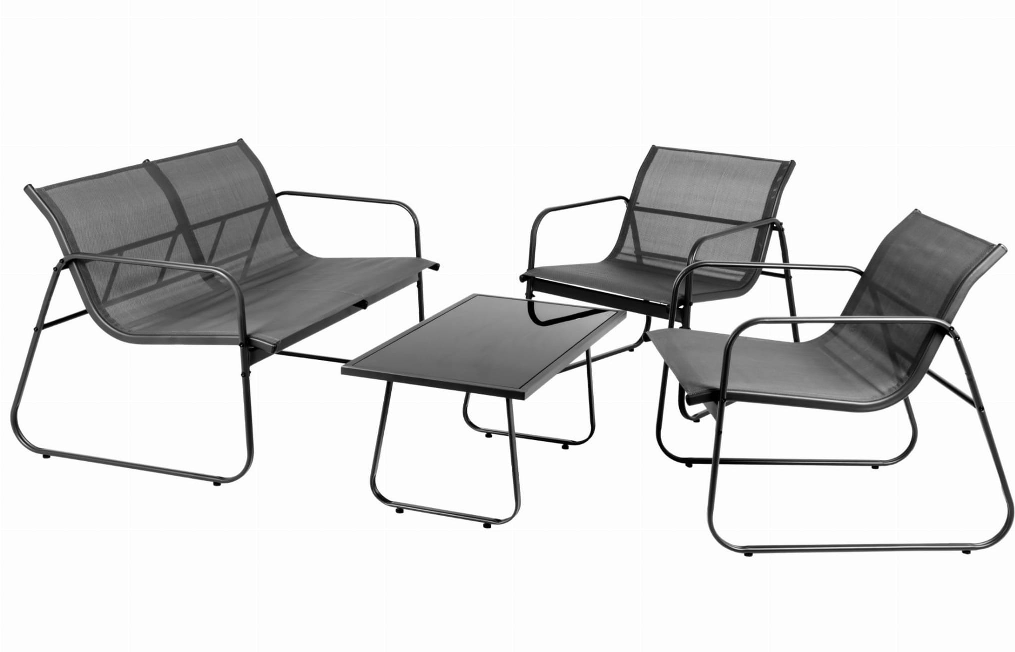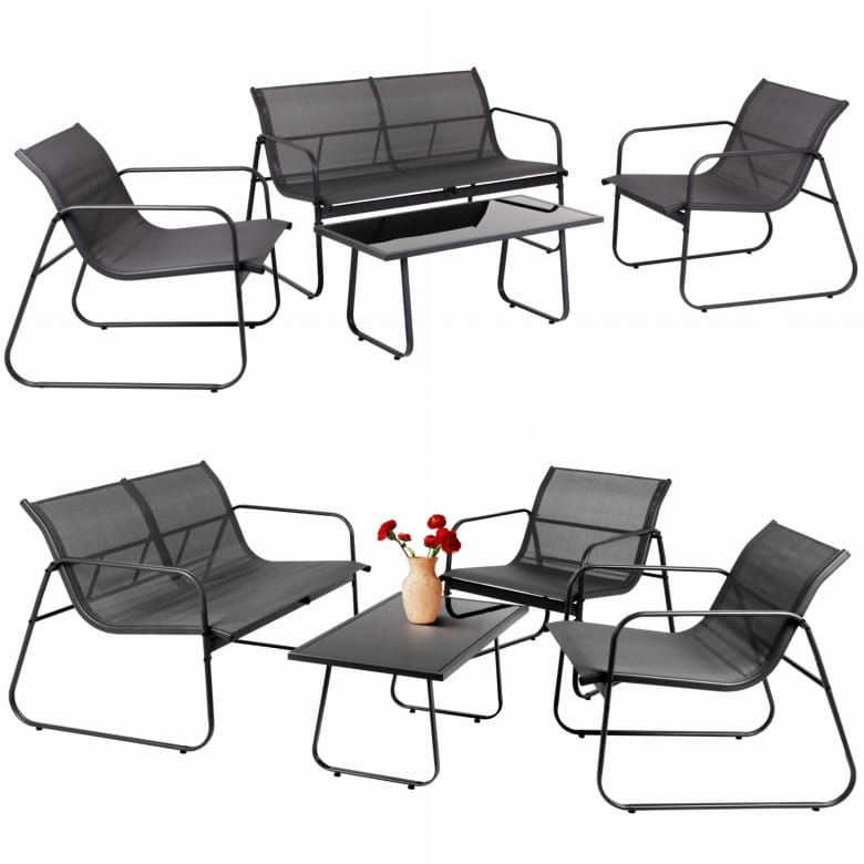 Zestaw mebli ogrodowych czarny: stolik, sofa i dwa fotele, styl nowoczesny i trwałe materiały