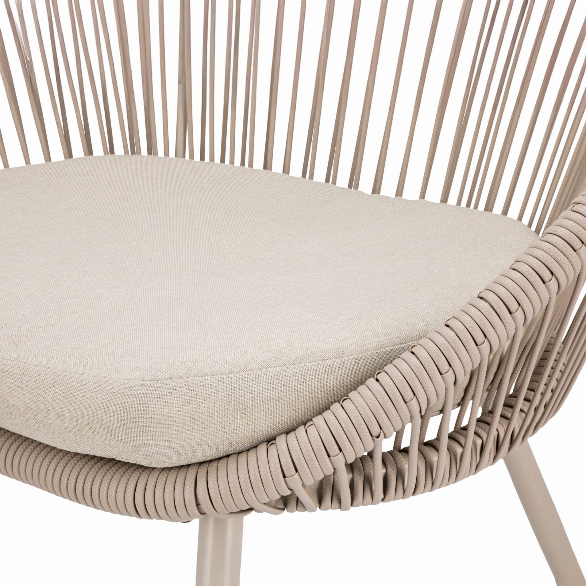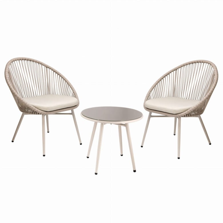 Profilowane oparcia i siedziska dopasowują się do ciała, a grube, miękkie poduszki zapewniają wysoki komfort podczas porannej kawy, pracy na laptopie czy wieczornego relaksu. Lekka, a jednocześnie stabilna konstrukcja sprawia, że zestaw jest odporny na codzienne użytkowanie i łatwy do przestawiania.