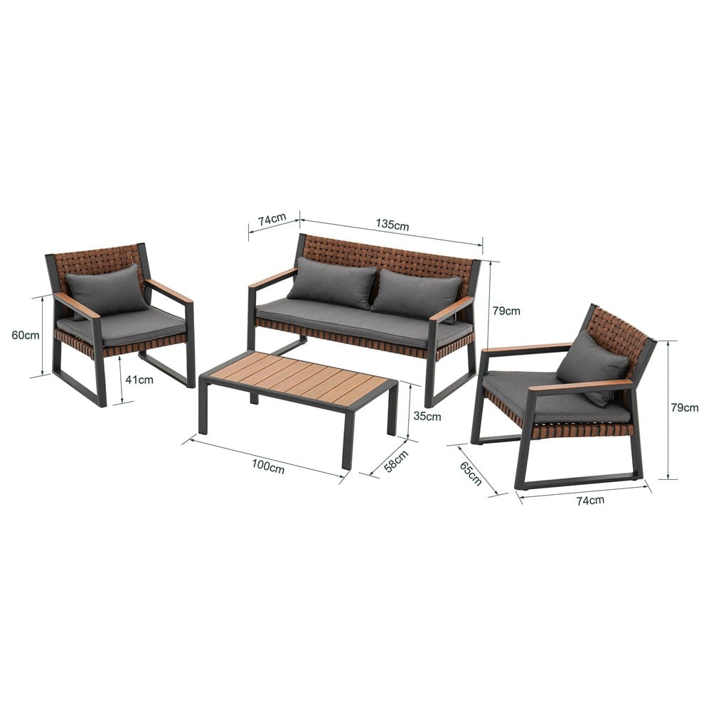 Zestaw mebli ogrodowych 4-osobowy z sofą, fotelami i stolikiem Texas