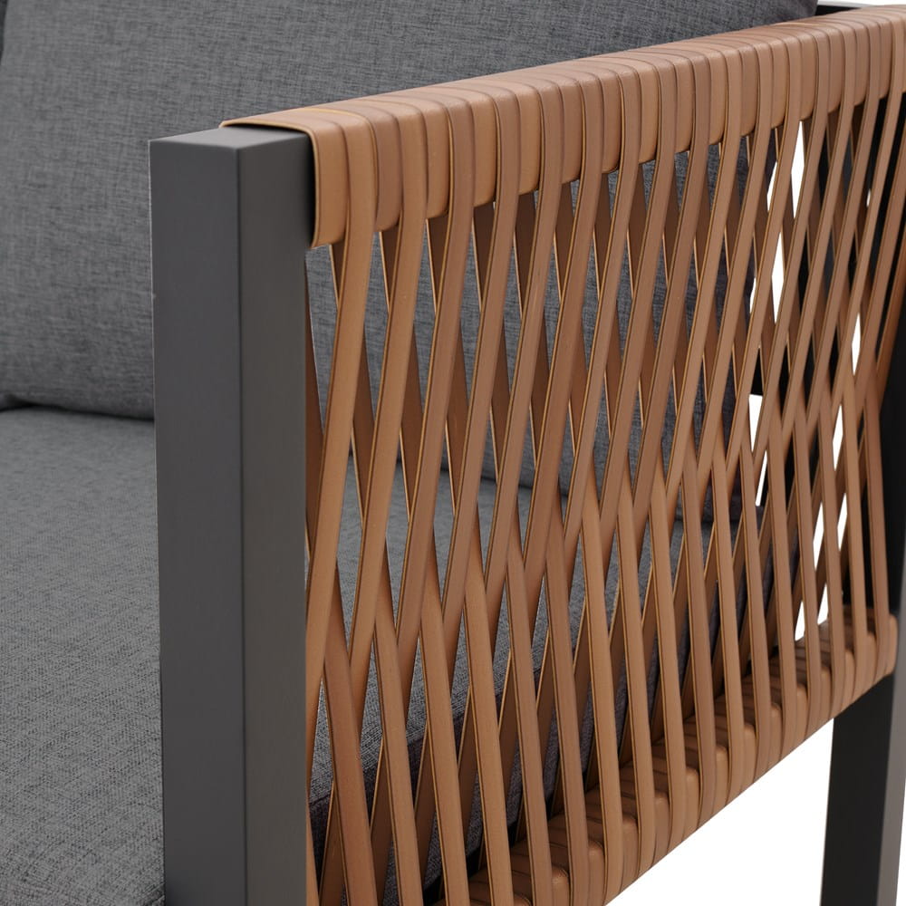 Szara kolorystyka pasuje do roślinności i nowoczesnej architektury, a pleciony, ażurowy bok dodaje całości wyjątkowego akcentu w stylu boho.