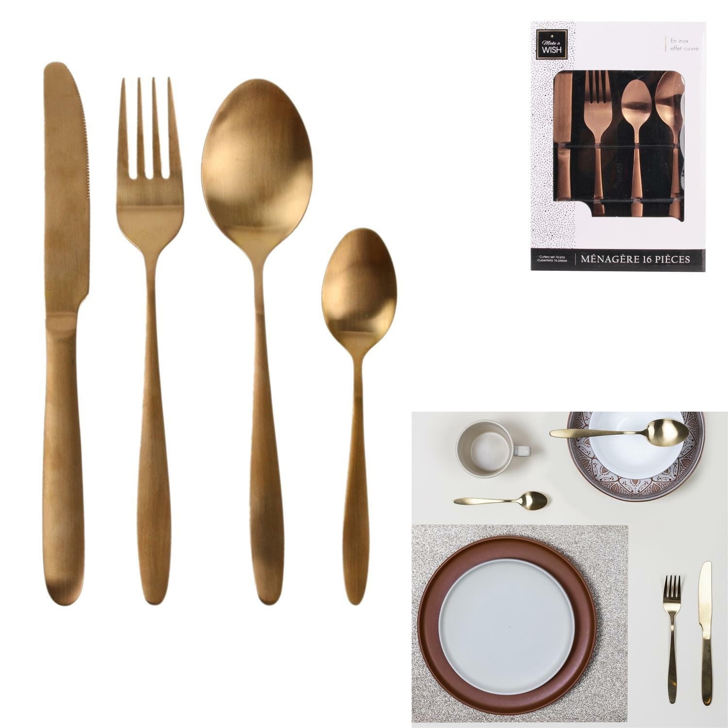 Zestaw miedzianych sztućców 16 szt. Charbon