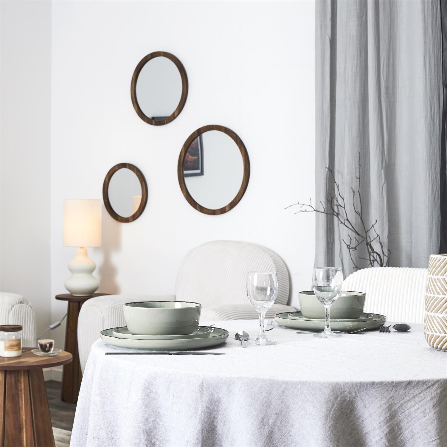 Zastawa obiadowa Temp wykonana została z modnej ceramiki kamionkowej, która wyróżnia się trwałością i naturalnym wyglądem. Jej zielony kolor oraz nieregularny kształt i subtelna tekstura doskonale wpisują się w estetykę stylu japandi – harmonijnego połączenia minimalizmu i natury.