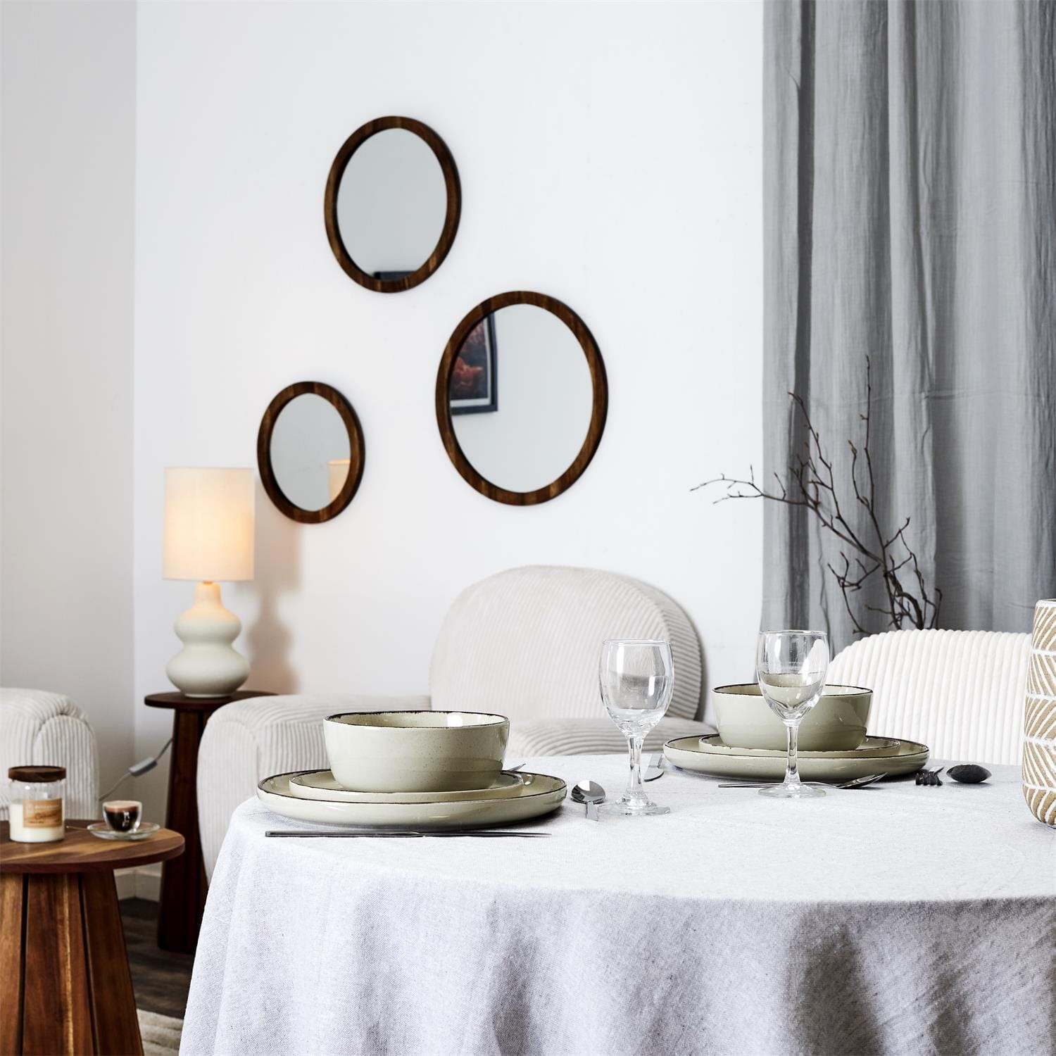 Komplet przeznaczony jest dla 4 osób i składa się z elementów idealnych do codziennych posiłków oraz eleganckich spotkań przy stole. Zastawa wprowadza harmonię i estetykę do jadalni, podkreślając naturalny klimat wnętrza.