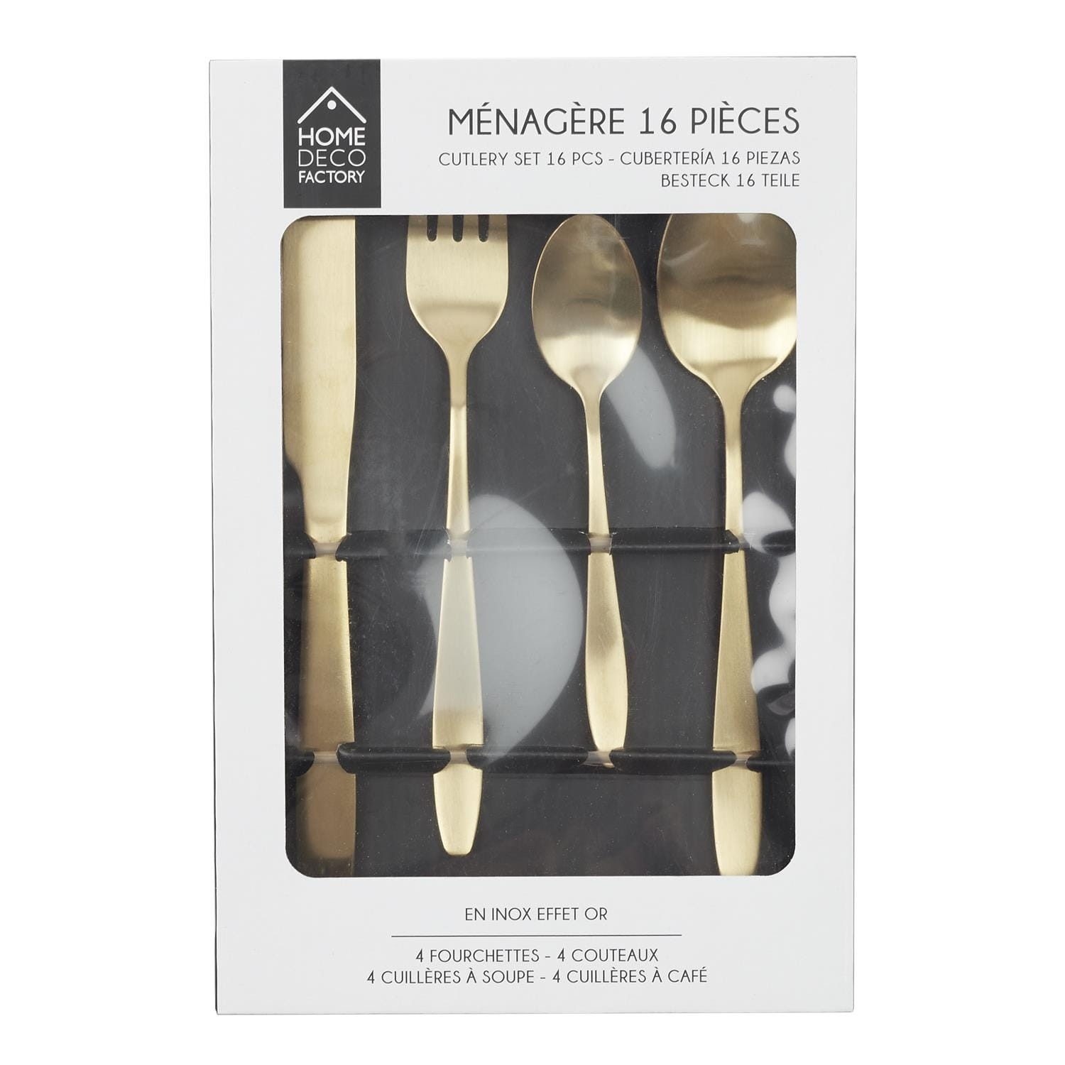 Złoty zestaw sztućców 16 el. ze stali nierdzewnej, do 4 osób, do zmywarki